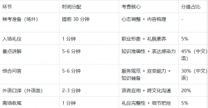- 时间分配失衡:景点讲解不可超过 6 分钟,问答环节每题回答 1-2 分钟,避免某一题耗时过长导致其他题目没时间作答;