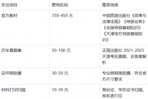 - 选择正规资料:核心教材认准 “中国旅游出版社” 官方版本,真题选择近 5 年天津考区真题集,总费用不超过 500 元;